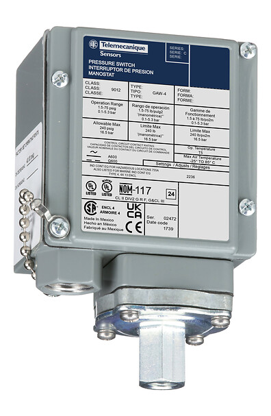 Pressure switch 9012G, adjustable scale, 2 thresholds, 1.5 to 75 PSIG