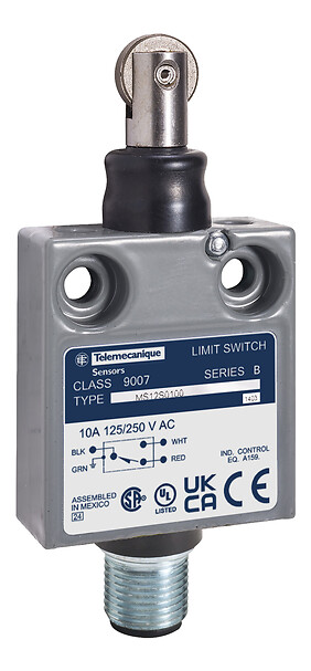 Limit switch, 9007, ms cross roller plunger, 3' side cable