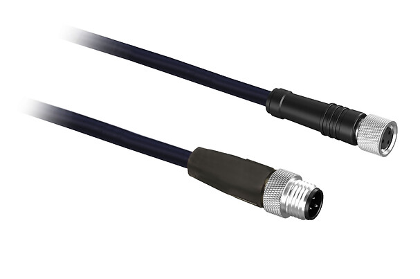 Jumper cable XZ, male straight M12 4 pin, female straight M8 4 pin, PUR 2 m