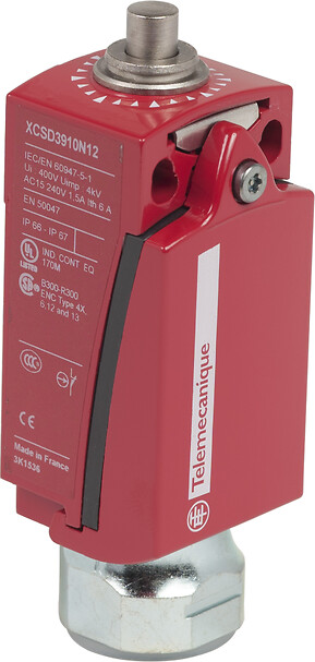 Safety limit switch, Telemecanique Safety switches XCS, metal, steel plunger, 2NC+1 NO, 1 entry tapped M20 x 1.5