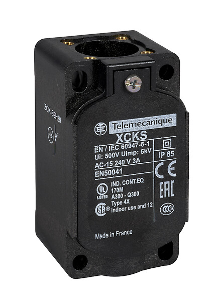 A300, AC-15 (Ue = 240 V), Ie = 3 A conforming to IEC 60947-5-1 appendix A, Q300, DC-13 (Ue = 250 V), Ie = 0.27 A conforming to IEC 60947-5-1 appendix A
