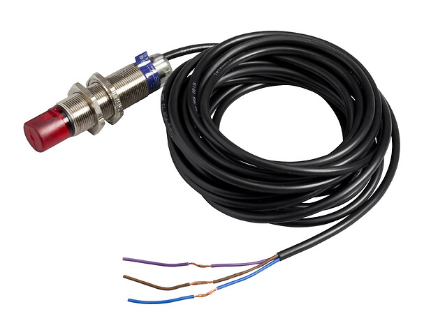Photoelectric sensors XU, photo electric sensor, cylindrical, plastic, angled, polarised, Smax 5.5 m, PNP, Cable 2 m