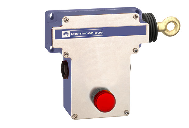 Simple emergency stop rope pull switch, Telemecanique rope pull switches XY2C, Latching emergency trip wire cable 300 VAC 10 A XY2CE