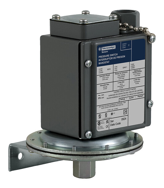 Electromechanical vacuum switch, 9016G, adjustable scale, 2 thresholds, Set 0 to 25 InHg