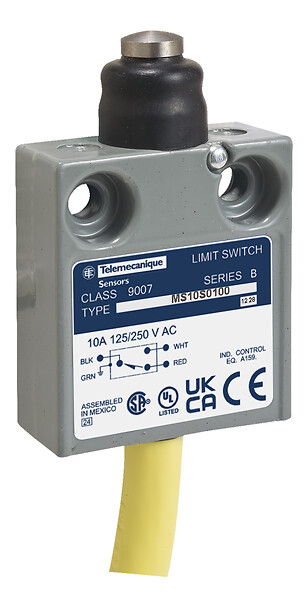 Limit switch, 9007, ms top push plunger, booted, 12' bottom cable