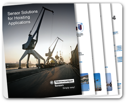 Need detection solutions for the Hoisting industry? The Sensor Solutions for Hoisting Applications brochure from Telemecanique Sensors is a one-stop resource! In a single, convenient guide, you’ll see sensors for Block hoists as well as Overhead, Gantry, Mobile, Tower, and Harbor cranes.